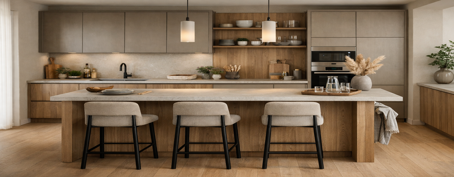 При проектировании кухни важно продумать не только гарнитур, но и дополнительные элементы для комфорта. Один из таких элементов — барная стойка. Она служит обеденной зоной, дополнительной рабочей поверхностью или инструментом зонирования.